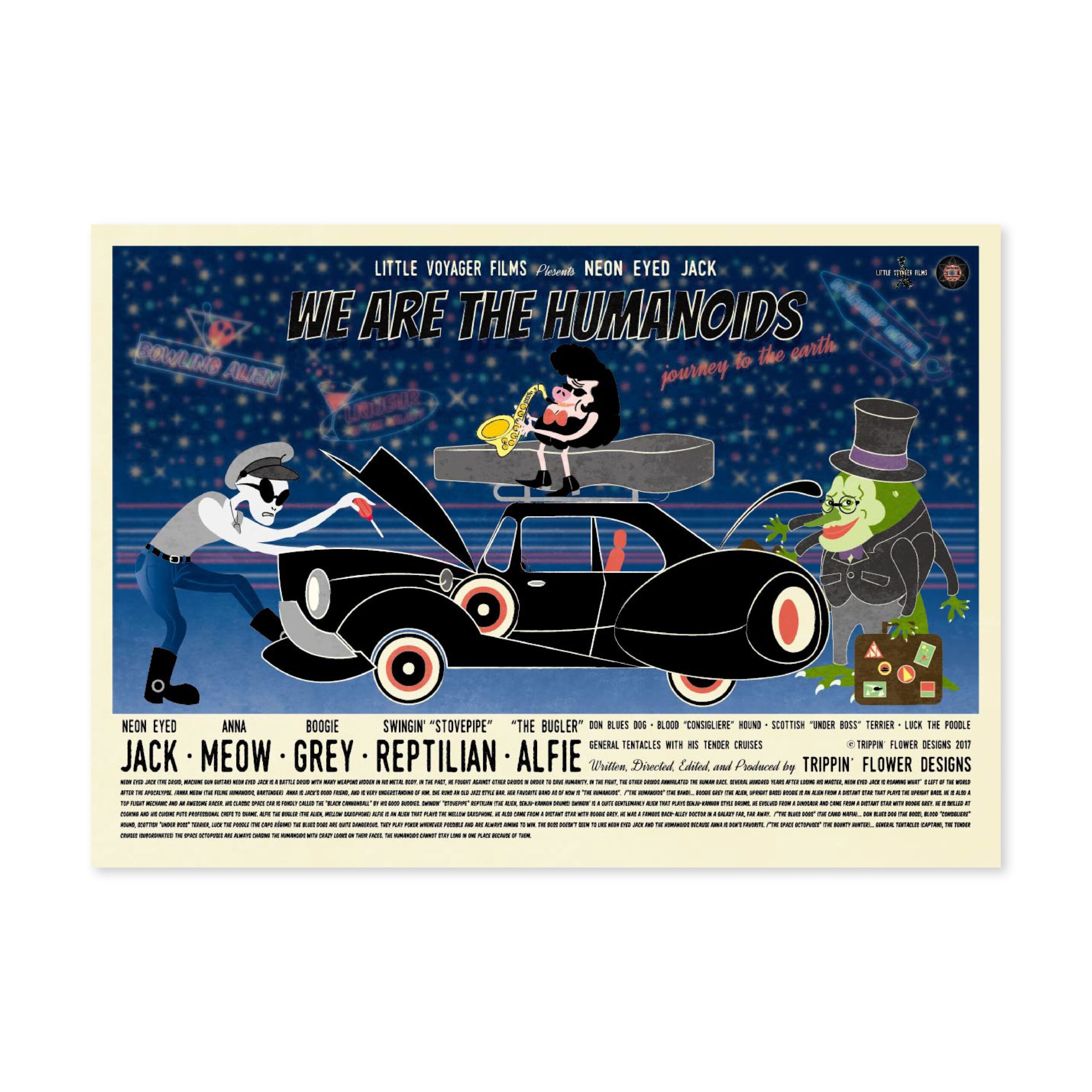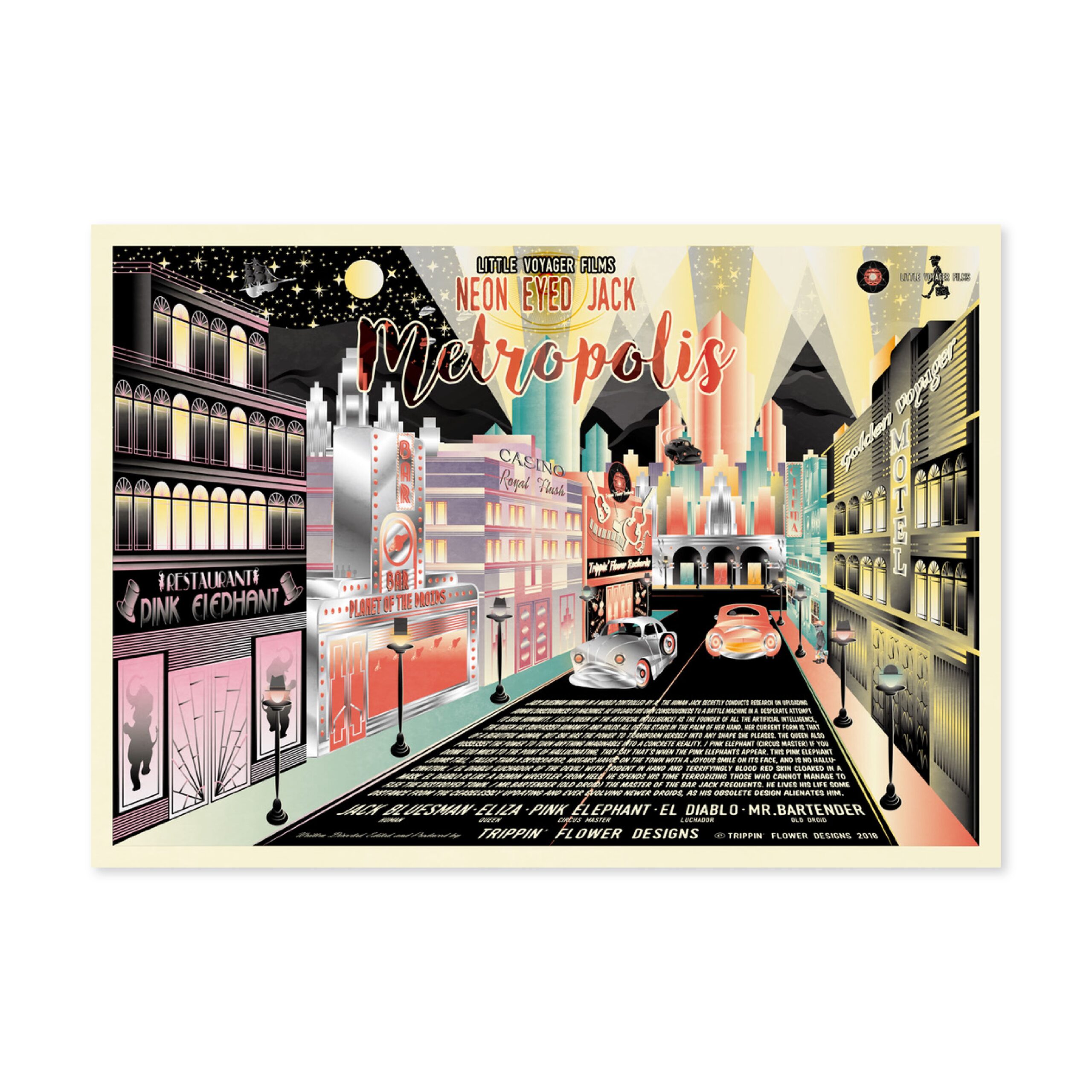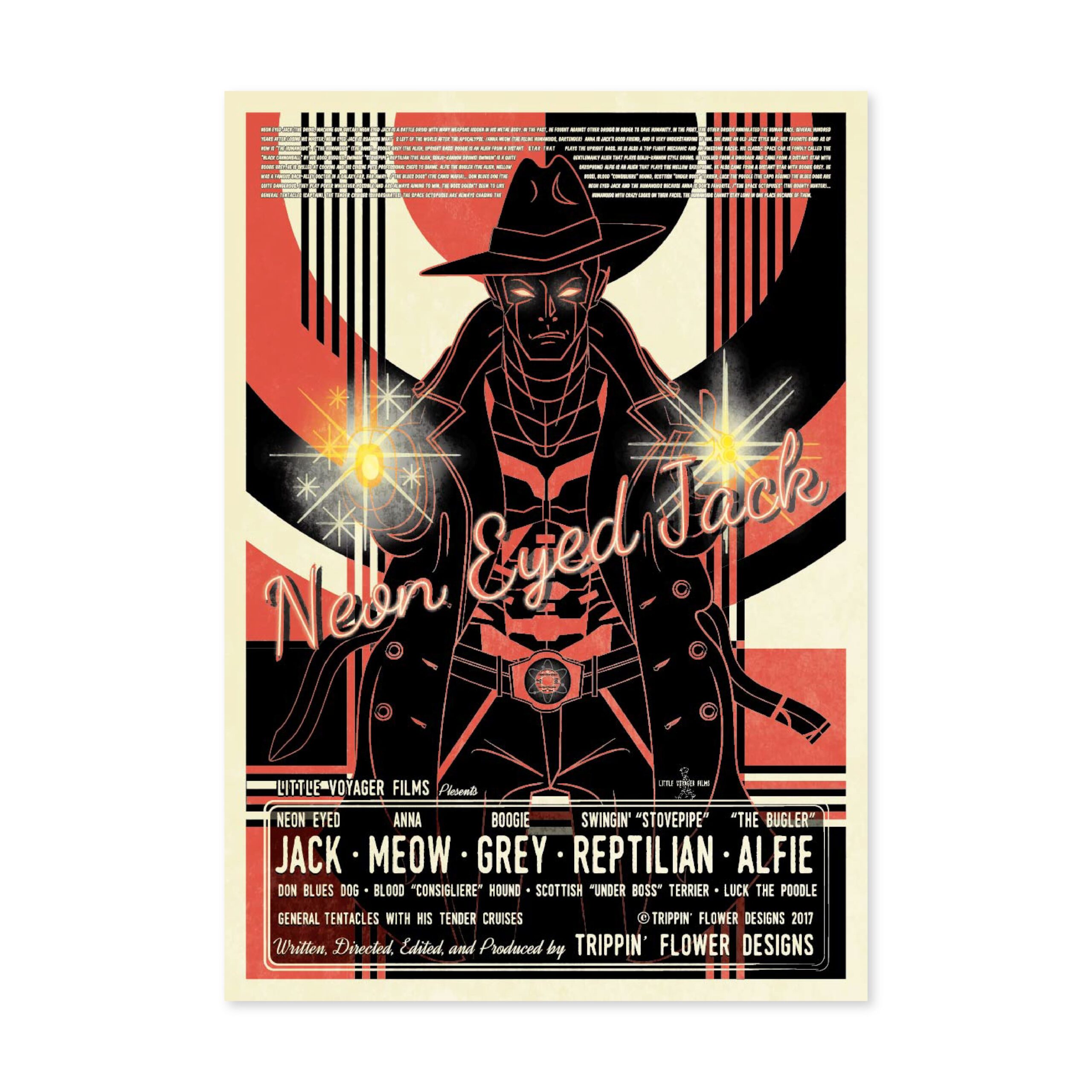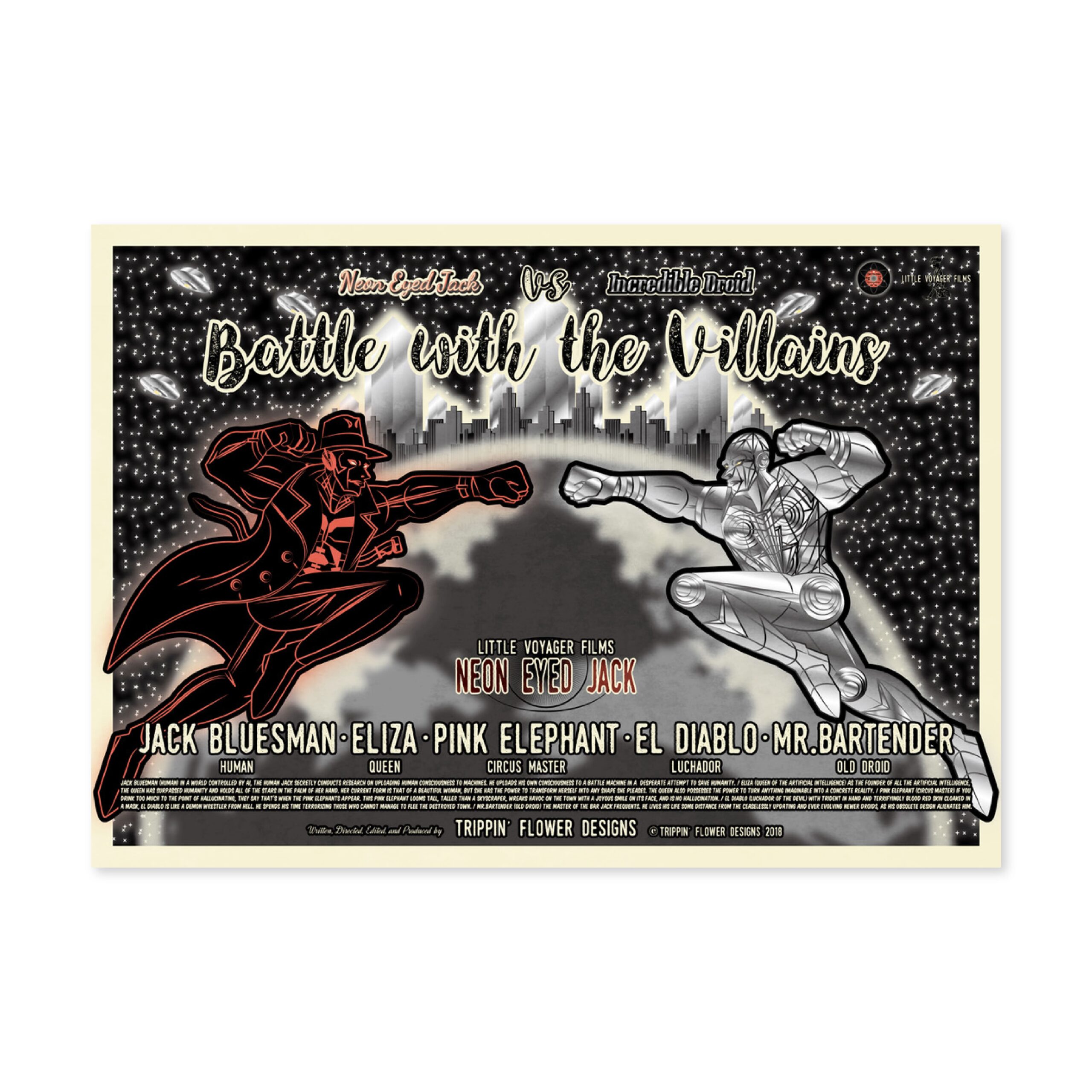 I’m a Japanese multi-media designer from Kobe working in graphics, animation, graffiti, music, scriptwriting and web design. Since childhood I have been inspired by American comics and films. I traveled across the USA working as a vintage clothes buyer for a Japanese clothes shop. My recent work reflects my passion for vintage sci-fi movies, music and culture but reflected through the contemporary medium of computer based graphic design. My work is for music event flyers and promotional material for restaurants, shops and fashion events in Kobe. In 2017, I held my first solo show in my local neighbor hood. My latest work continues exploring my love of the imagery and narratives of the science fiction and noir genres.