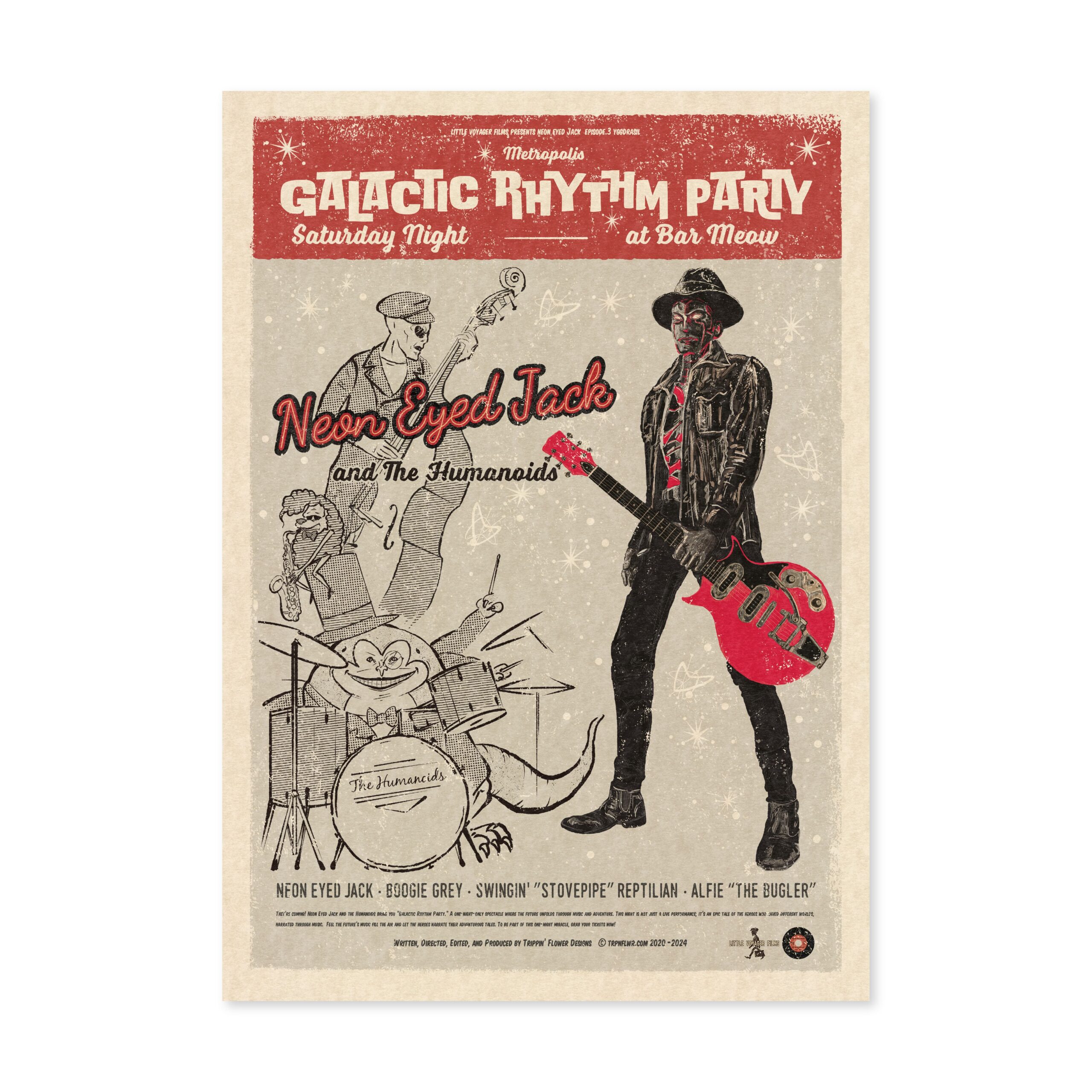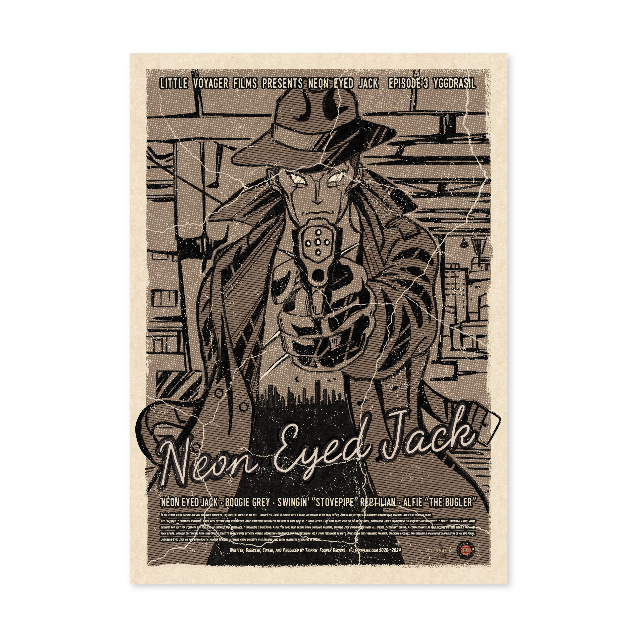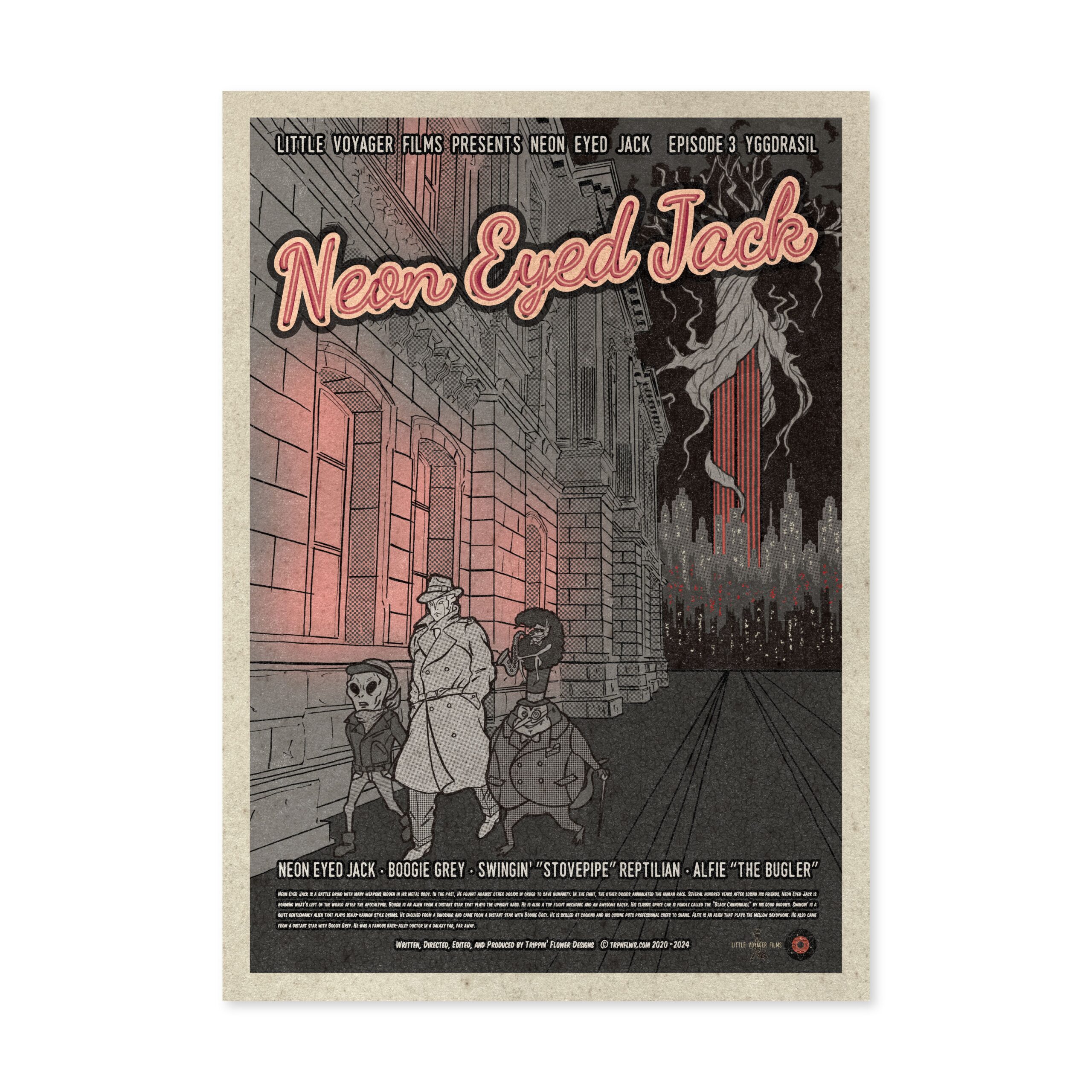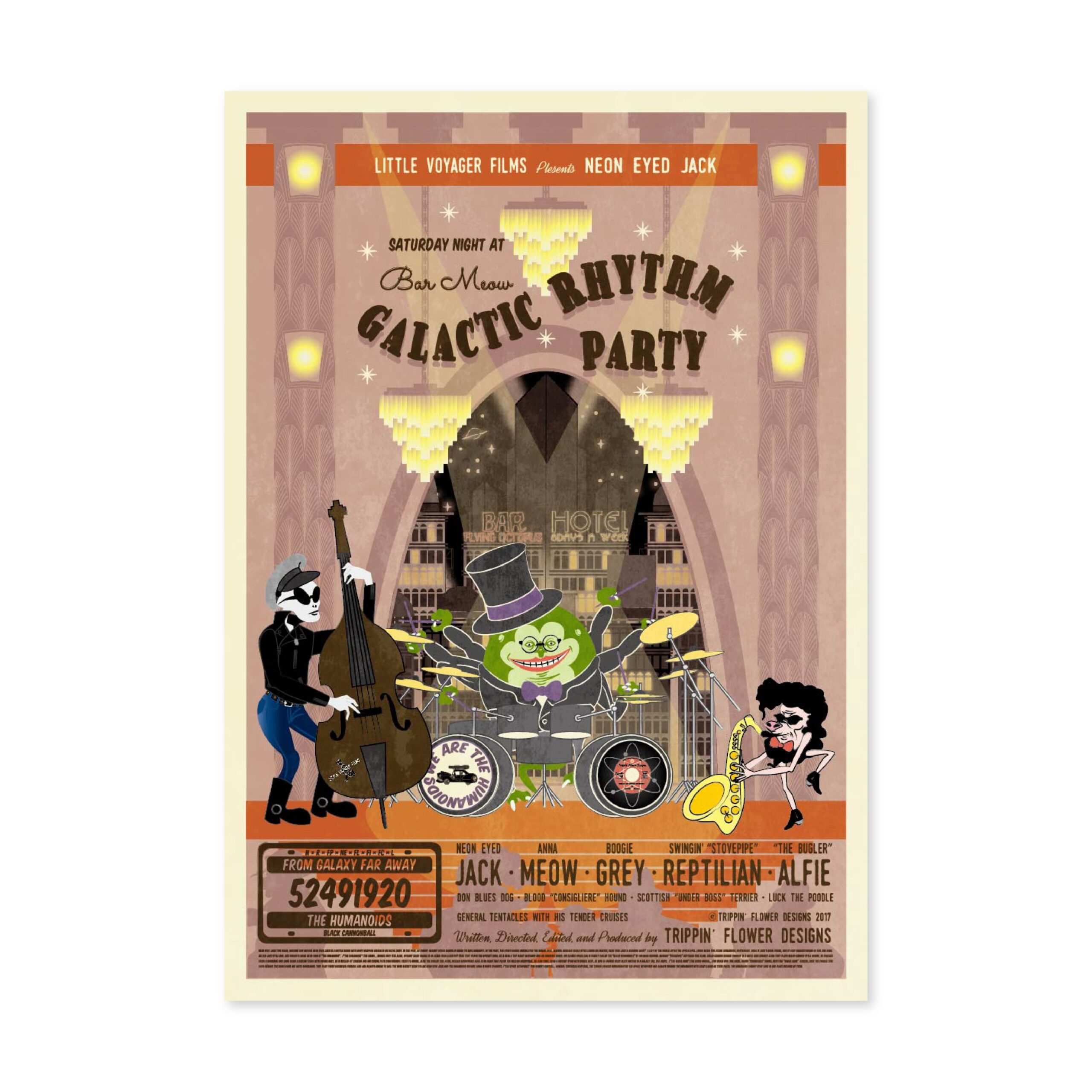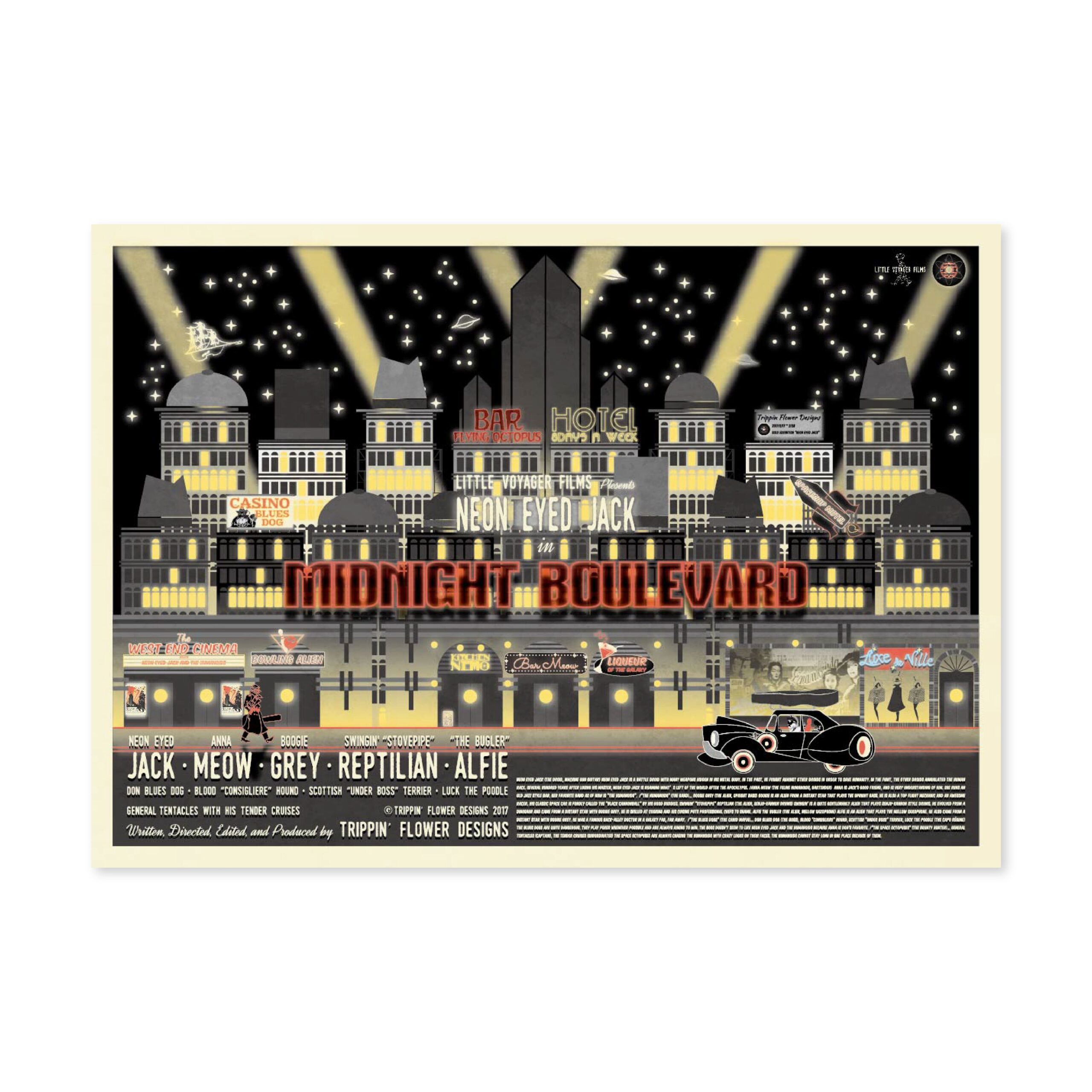 I’m a Japanese multi-media designer from Kobe working in graphics, animation, graffiti, music, scriptwriting and web design. Since childhood I have been inspired by American comics and films. I traveled across the USA working as a vintage clothes buyer for a Japanese clothes shop. My recent work reflects my passion for vintage sci-fi movies, music and culture but reflected through the contemporary medium of computer based graphic design. My work is for music event flyers and promotional material for restaurants, shops and fashion events in Kobe. In 2017, I held my first solo show in my local neighbor hood. My latest work continues exploring my love of the imagery and narratives of the science fiction and noir genres.